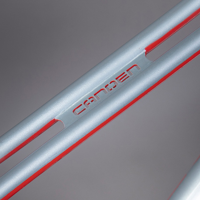 Utilizamos un diseño de tubos superiores gemelos que se curvan en ambos planos, dando un ancho adicional que proporciona una buena rigidez lateral al triángulo delantero, y proporcionando un enrutamiento interno limpio para el cable de velocidades y la manguera del freno; desde el frente hasta la parte trasera. Colocamos unas punteras de terminación en el frente de los tubos superiores por donde ingresa el cableado.
