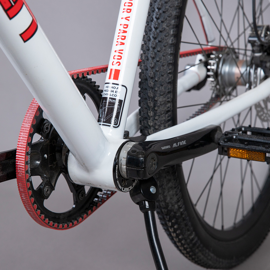 De familia del globo de sangre y corazón, no quiso ser menos y llevar a sus colores también en su bicicleta.